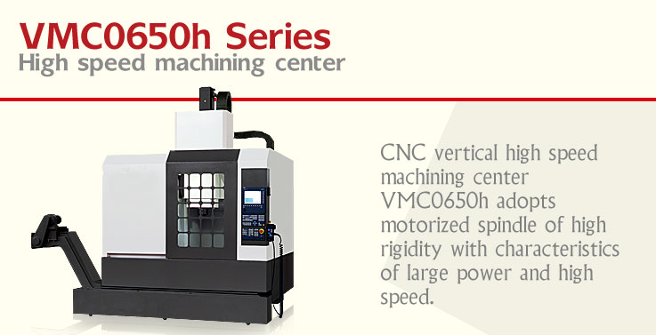 CNC vertical high speed machining center VMC0650h adopts motorized spindle of high rigidity with characteristics of large power and high speed. Precison ball screws with large lead pitch are supplied for the three axes to realize high speed transmission, and precision linear rollers are provided for the three axes to bring up low dynamic-static friction coefficient and high dynamic performance, as well as satisfy machining of mould with high accuracy.
